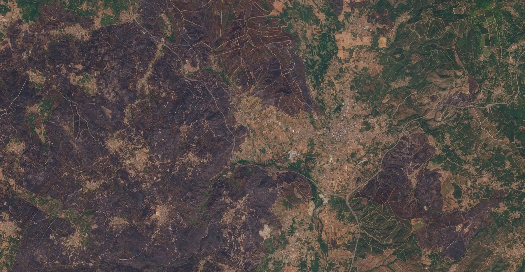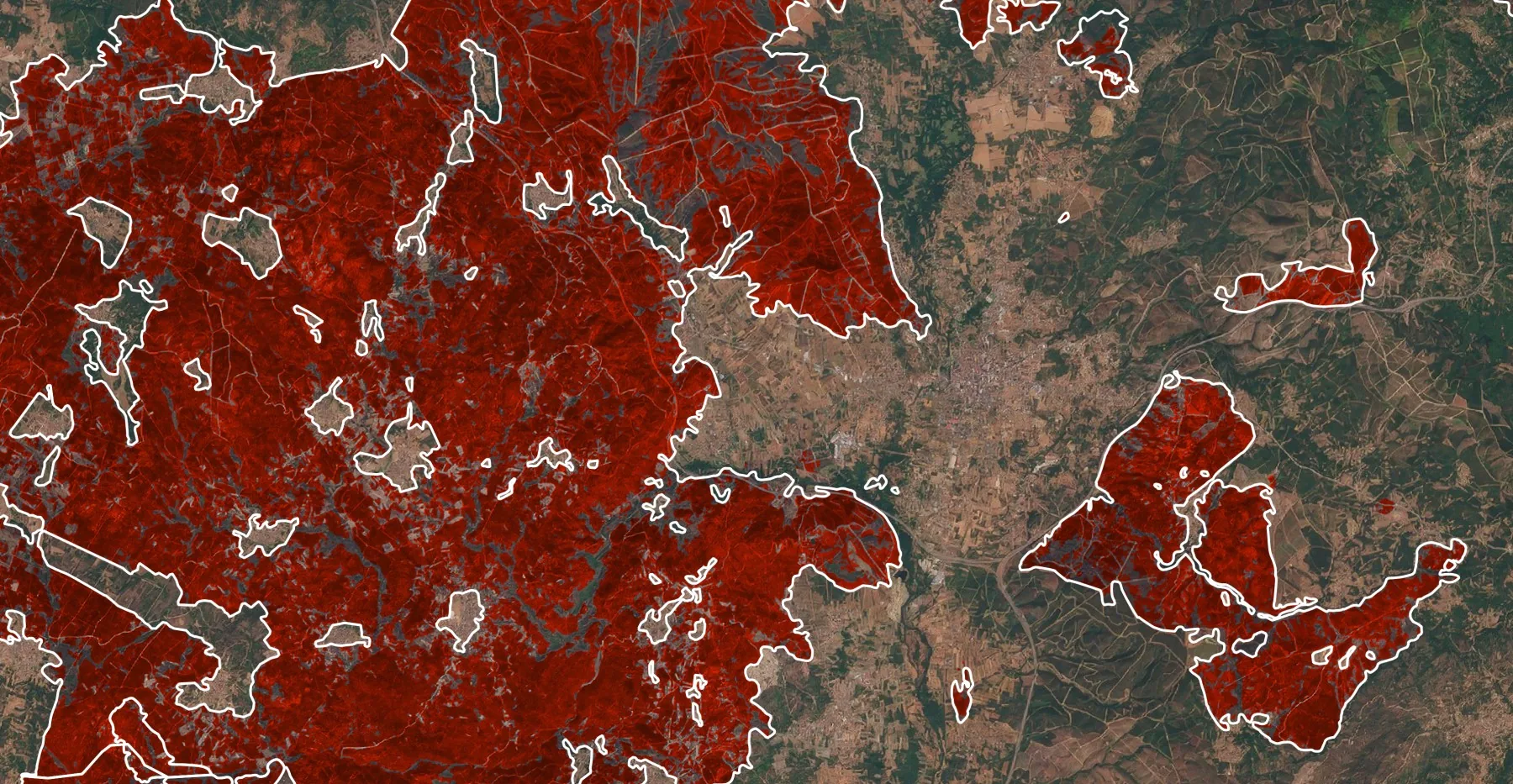 The EFFIS Burnt Area product estimated the burnt perimeters at approximately 1230 km², which triggered several misinterpretations in regional government communications and local media coverage.