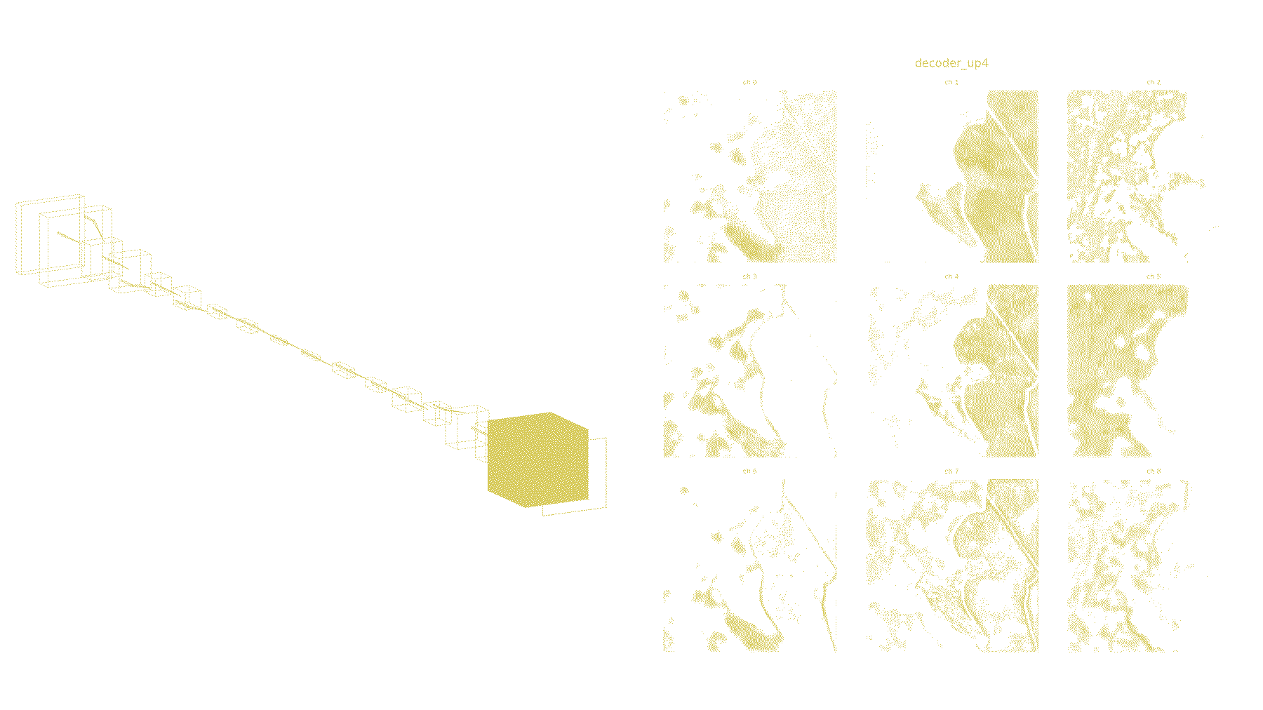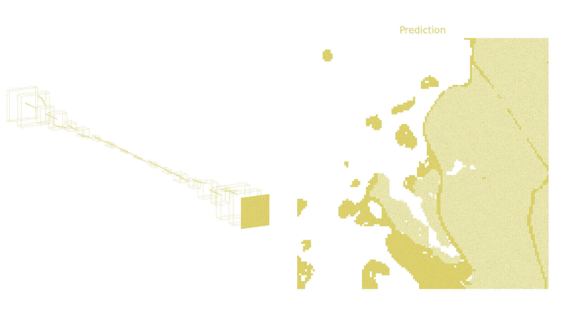 What is shown below is a neural network—specifically a U-Net—designed and trained to identify the spectral signature of vegetation that has undergone combustion or intense radiation damage in recent wildfires at 10 m resolution. It uses a single multispectral Sentinel-2 L2A image as its sole input and outputs a three-class map: