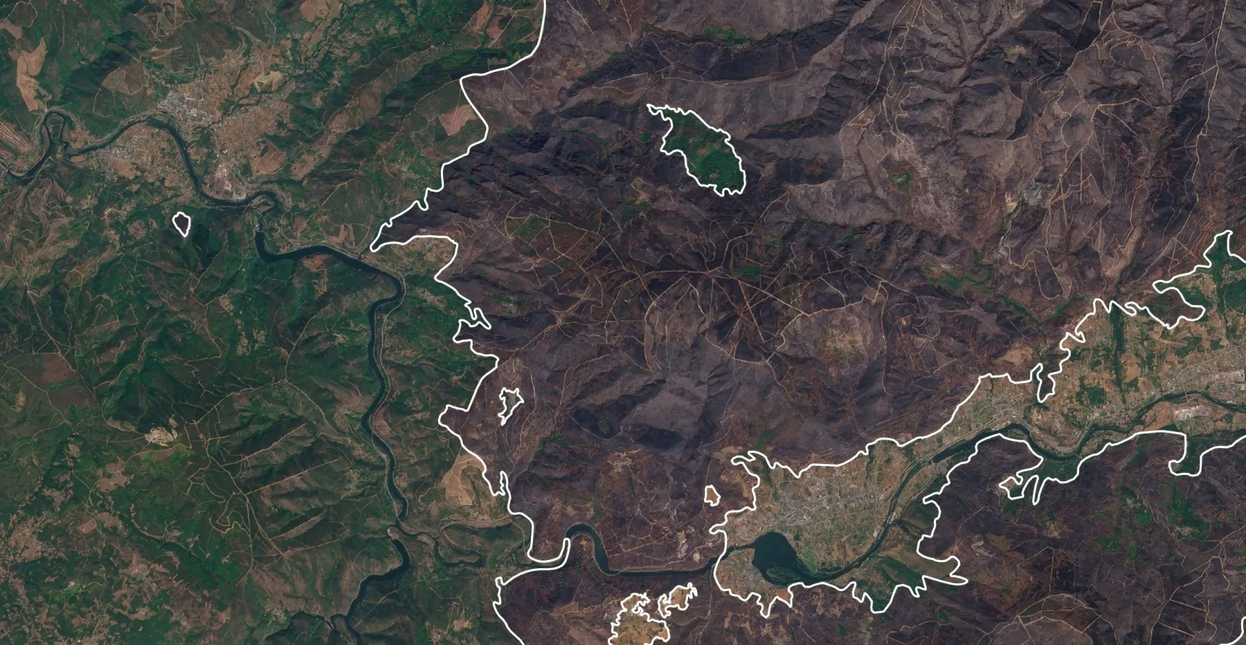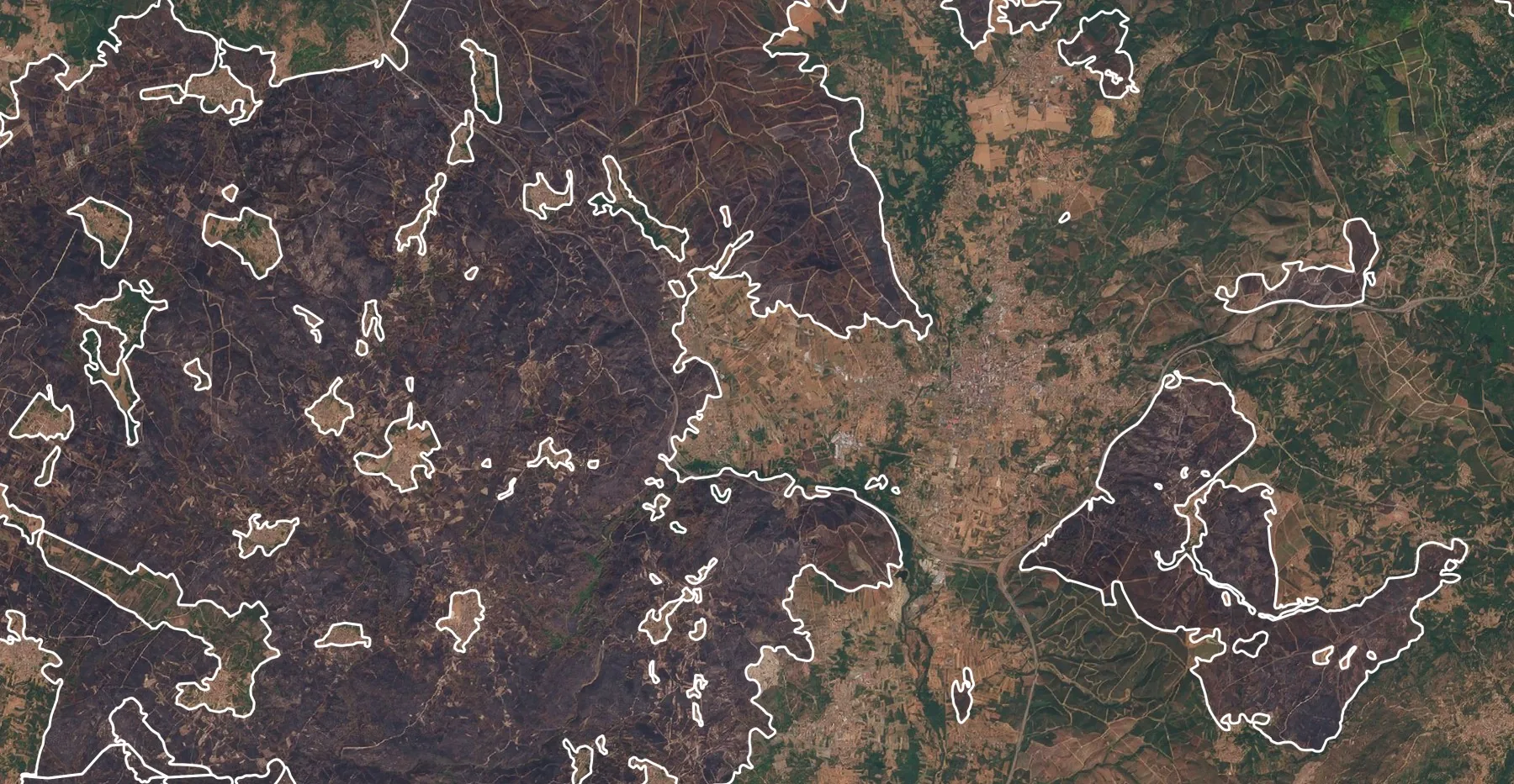 The EFFIS Burnt Area product estimated the burnt perimeters at approximately 1230 km², which triggered several misinterpretations in regional government communications and local media coverage.