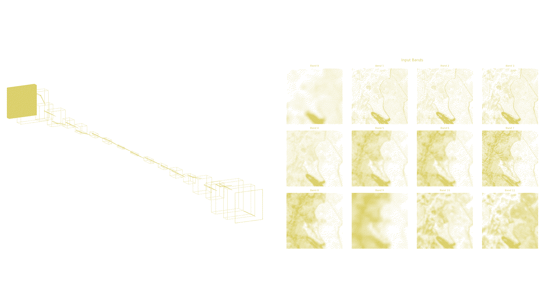 What is shown below is a neural network—specifically a U-Net—designed and trained to identify the spectral signature of vegetation that has undergone combustion or intense radiation damage in recent wildfires at 10 m resolution. It uses a single multispectral Sentinel-2 L2A image as its sole input and outputs a three-class map: